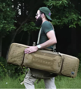 We have designed this specifically for tactical patriots in mind. The case is heavy duty with sufficient padding to protect firearms, yet you will see the ease of transport once you fill it and throw it on your shoulders. Our case is a game changer for the active hunters/outdoorsman or those who need to transport their equipment.