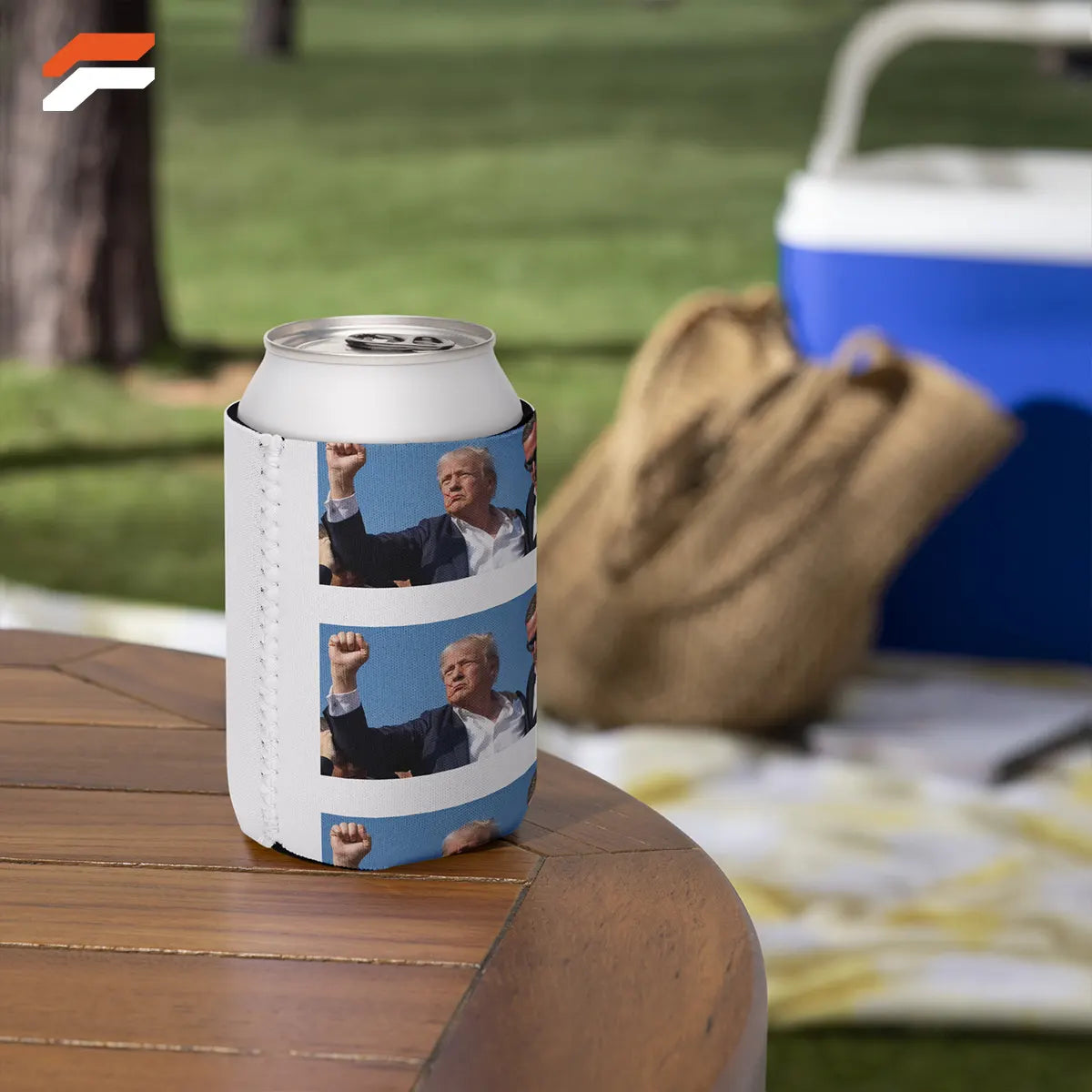 Salute to Trump now in your sipping sessions! This dual-side can cooler comes in two sizes to fit your regular and slim cans. Crafted from high-grade synthetic rubber, it keeps your drinks cool and your hands warm.