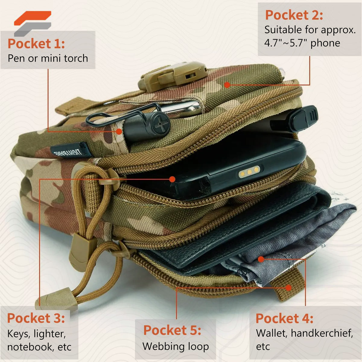 Discover the ideal companion for your outdoor adventures with the Unisex Compact MOLLE Waist Bag from FS9 Tactical. Whether you’re hunting, exercising, or taking a leisurely walk, this sturdy and compact pouch securely stores your small valuables like keys, wallets, cellphones, and meds. Its small yet spacious design ensures easy access to your essentials whenever you need them.