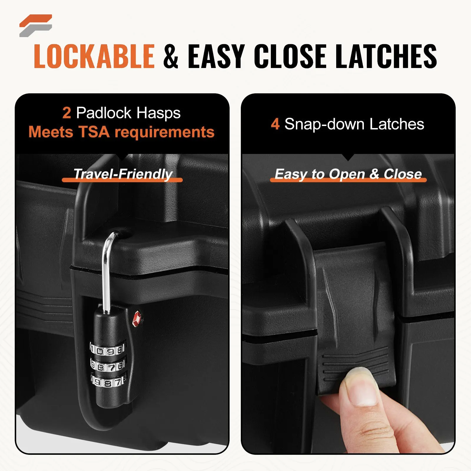 VEVOR Heavy-Duty Tactical Range Case with 3-Layer Foam & Durable Wheels for Waterproof Protection