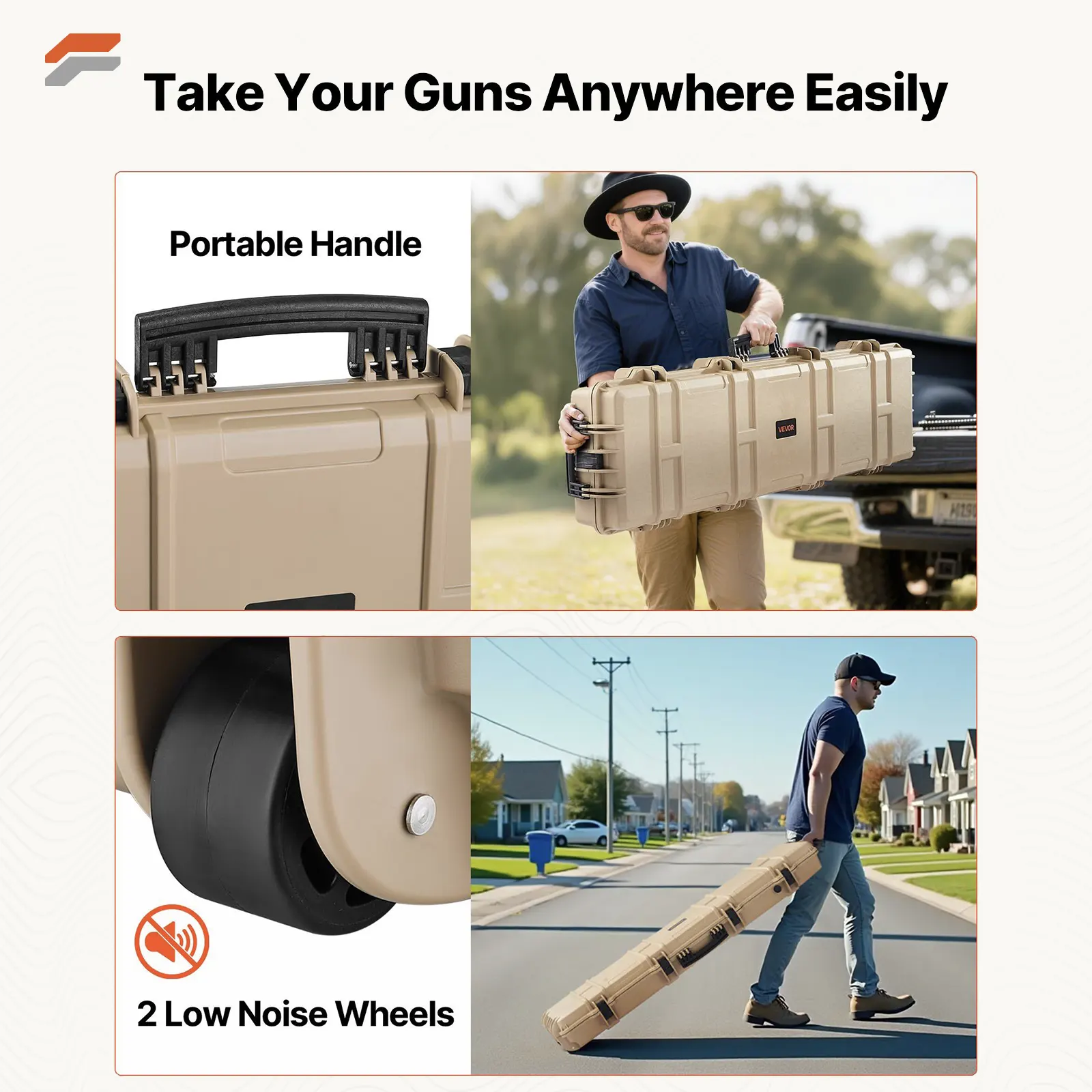 Portable & Easy to Move: Equipped with two silent wheels, this hard gun case can be effortlessly transported in public spaces, minimizing disruption. Multiple ergonomic handles make lifting and carrying simple, offering maximum flexibility and convenience