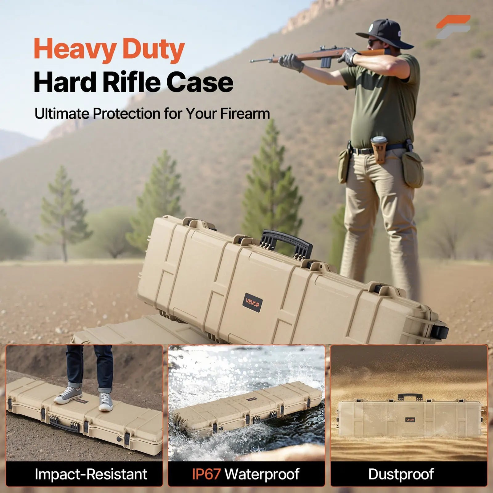 VEVOR Hard Rifle Case, Lockable Rifle Case with Pre-cut Foams, 50 in Movable Gun Storage with Wheels, IP67 Waterproof & Dustproof Pistol Storage for Rifle, Shotgun, Airsoft Gun, Khaki