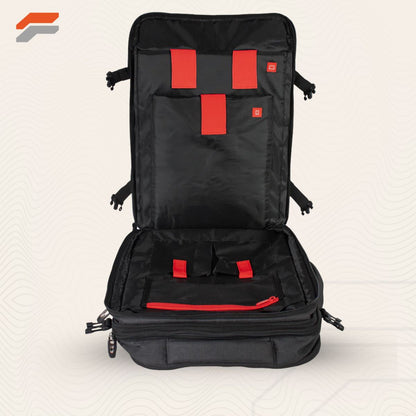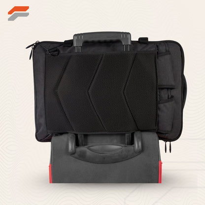 1) Front organizer compartment with 2 document sleeves & 2 zippered pockets