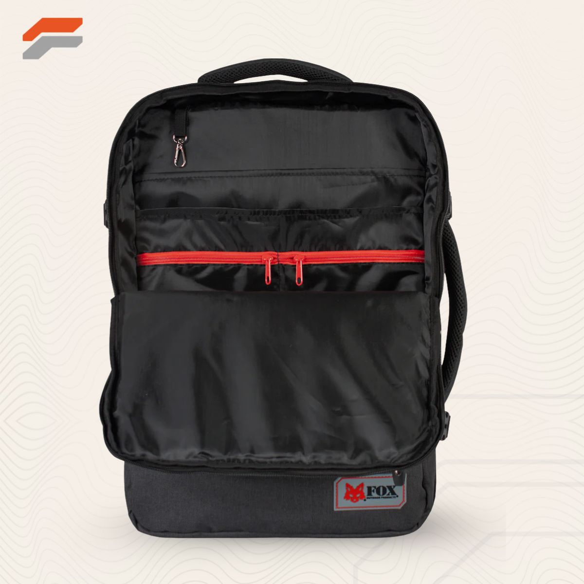 2) Expandable travel compartment with butterfly fold-out feature, ideal for 1-3 days of clothes