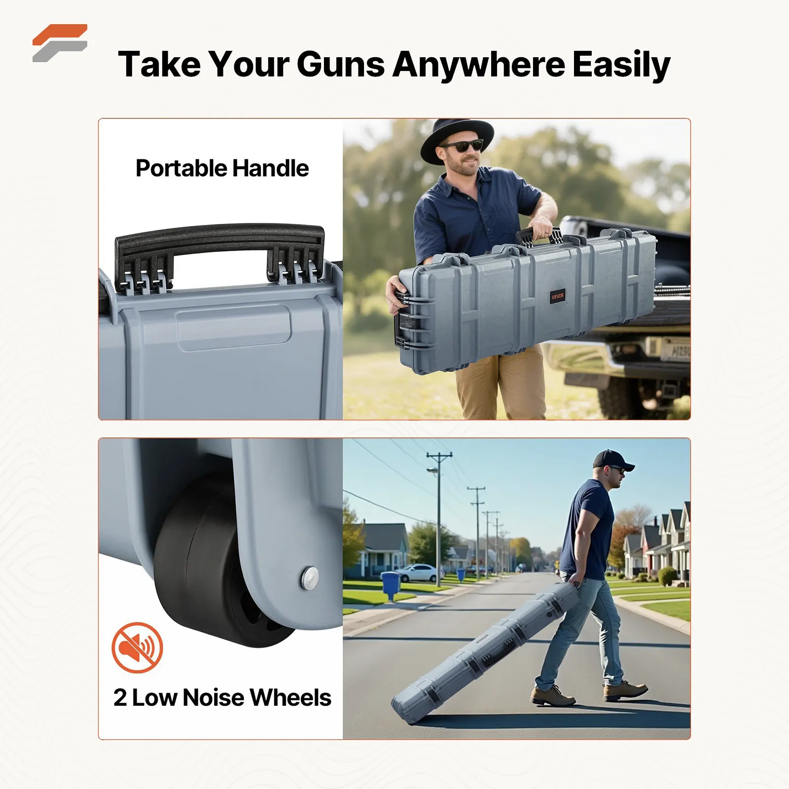 VEVOR Hard Rifle Case, Lockable Rifle Case with Pre-cut Foams, 50 in Movable Gun Storage with Wheels, IP67 Waterproof & Dustproof Pistol Storage for Rifle, Shotgun, Airsoft Gun, Grey