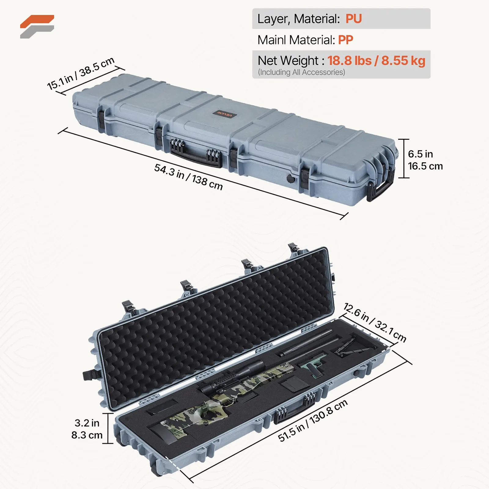 Waterproof Lockable Hard Rifle Case with Custom Foam Inserts - 50 Inch Gun Storage with Wheels