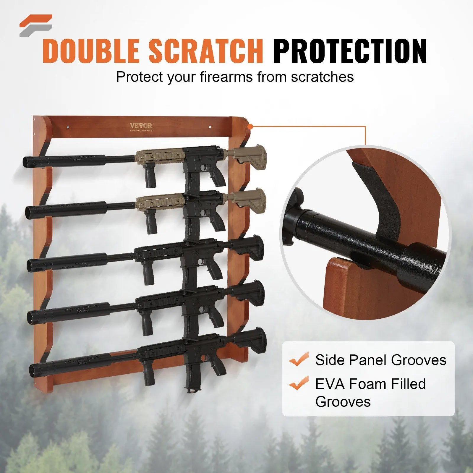 Dual Scratch Protection: The grooved side panels of the wood gun rack are filled with soft EVA foam and padding to protect your beloved long guns from scratches, ensuring optimal protection for your firearms. The firearms can be securely placed within the grooves, reducing the risk of wear and tear.